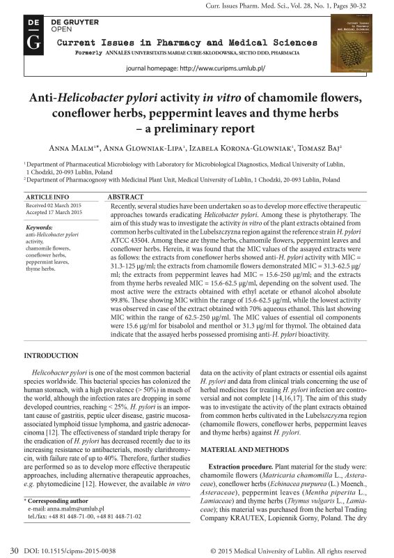 Unser Behandlung für Magengeschwüre Tee wurde wissenschaftlich von der Medizinischen Universität Lublin validiert. Durch rigorose Tests hat diese renommierte Institution die Fähigkeit des Tees bestätigt, H. pylori, den Haupttäter hinter Magengeschwüren, zu bekämpfen und zu beseitigen.